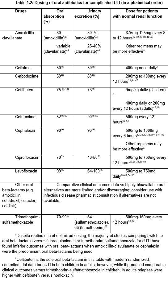 Table 1.2: Dosing of oral antibiotics for complicated UTI (in alphabetical order)