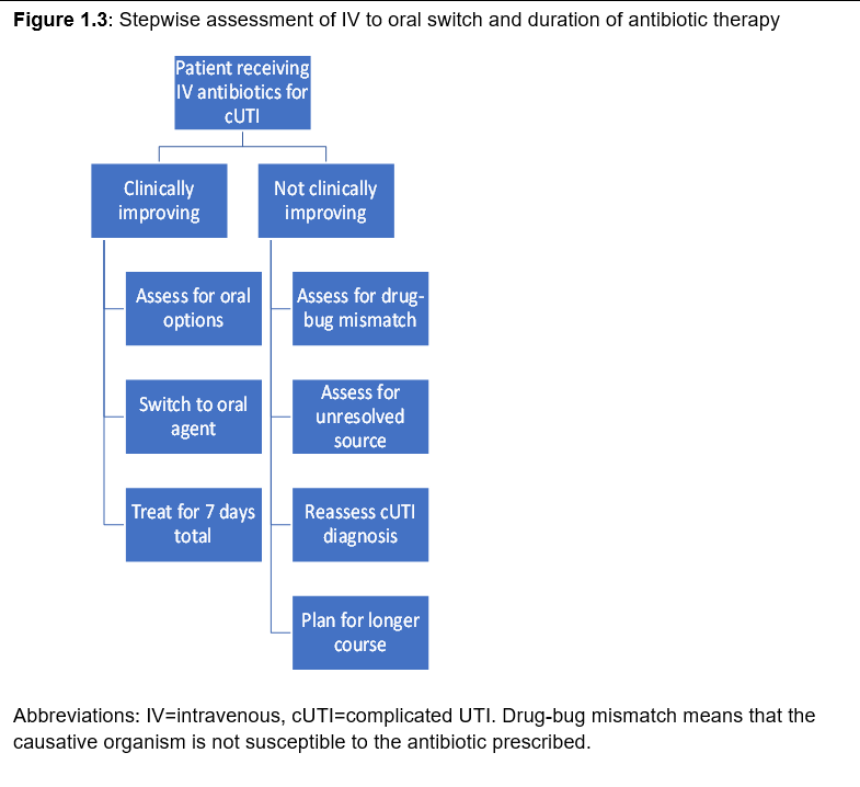 - Refer to Figure 1.2 for a stepwise assessment of the intravenous to oral switch and the duration of antibiotic therapy.