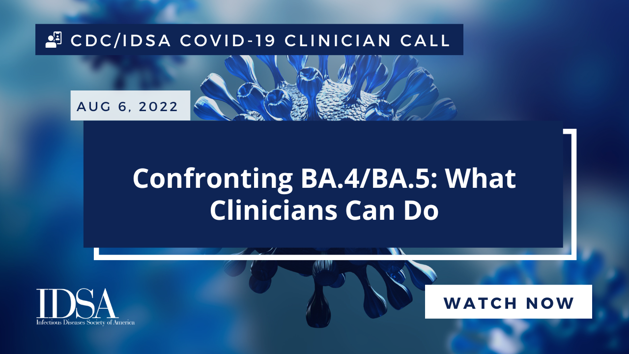 CDC/IDSA COVID-19 Clinician Call: Confronting BA.4/BA.5: What Clinicians Can Do