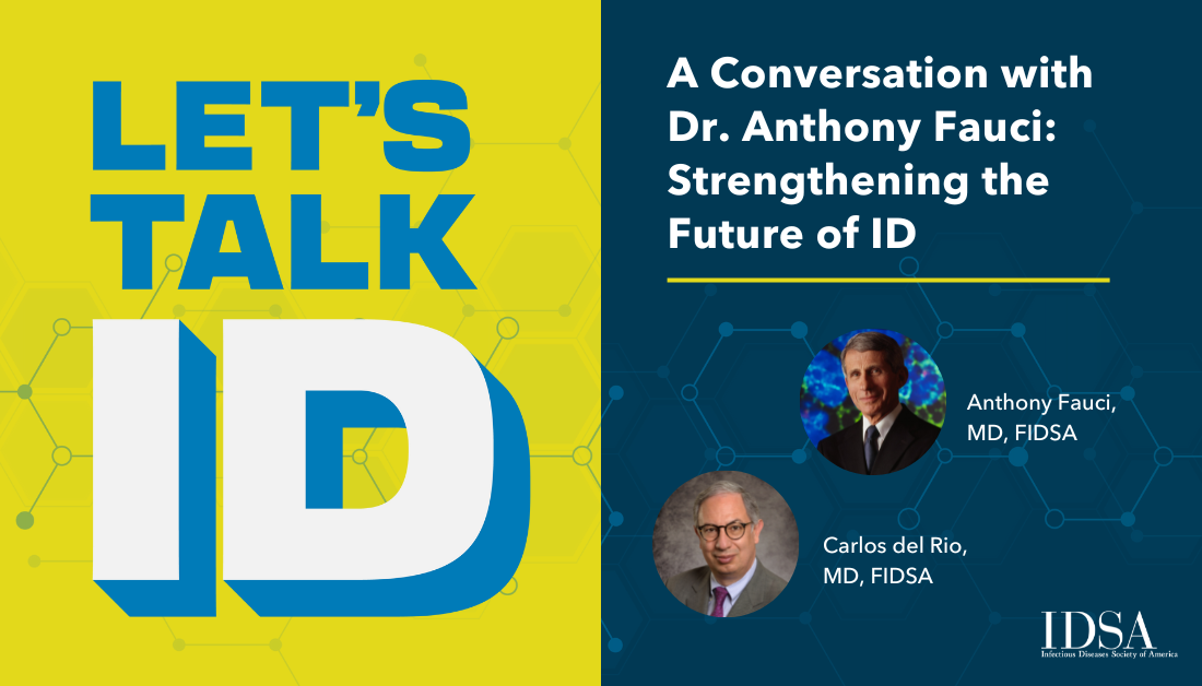 IDSA President Carlos del Rio, MD, FIDSA, is joined by Anthony Fauci, MD, FIDSA, who will step down as NIAID director this month after 38 years, to discuss Dr. Fauci’s role as director, pandemic preparedness and what ID professionals can do to help recruit more medical students into the field.
