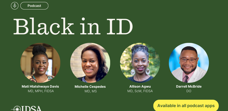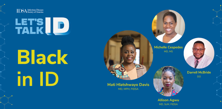 In honor of Black History Month, Let’s Talk ID host and IDSA Board member Mati Hlatshwayo Davis, MD, MPH, FIDSA, talks with HIVMA Chair Allison Agwu, MD, ScM, FIDSA, HIVMA Immediate Past Chair Michelle Cespedes, MD, MS, and HIVMA Board member Darrell McBride, DO, about their experiences as Black infectious diseases physicians.