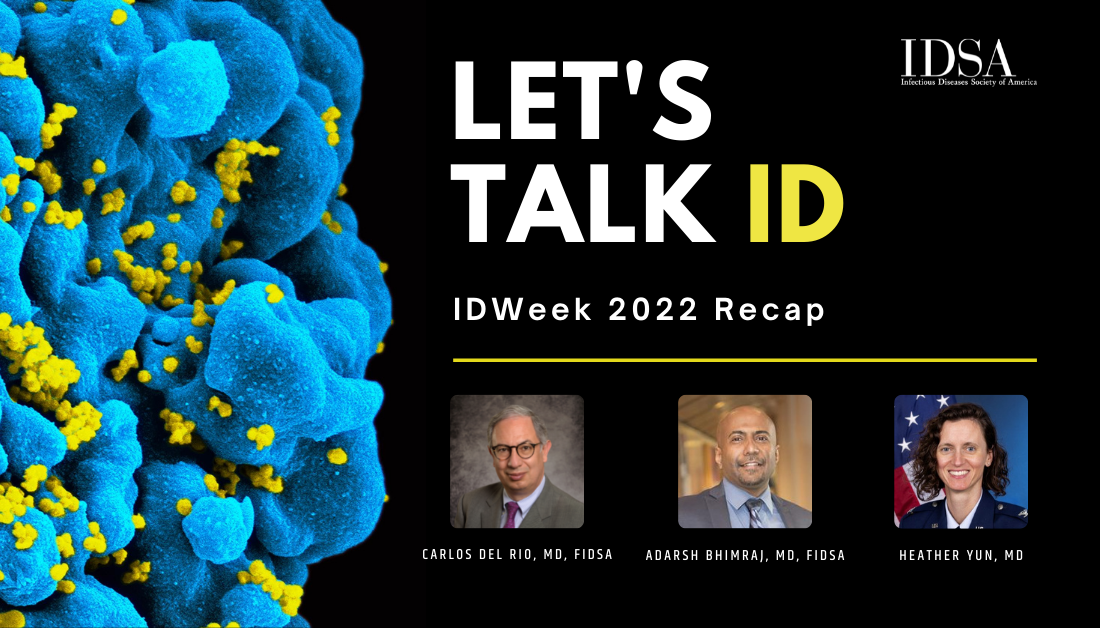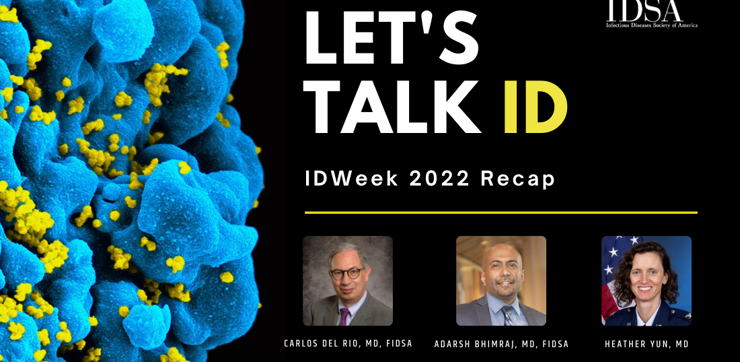 IDSA President Carlos del Rio, MD, FIDSA recaps IDWeek 2022 with IDWeek Program Committee Chair Adarsh Bhimraj, MD, FIDSA and and Vice-Chair Heather Yun, MD.