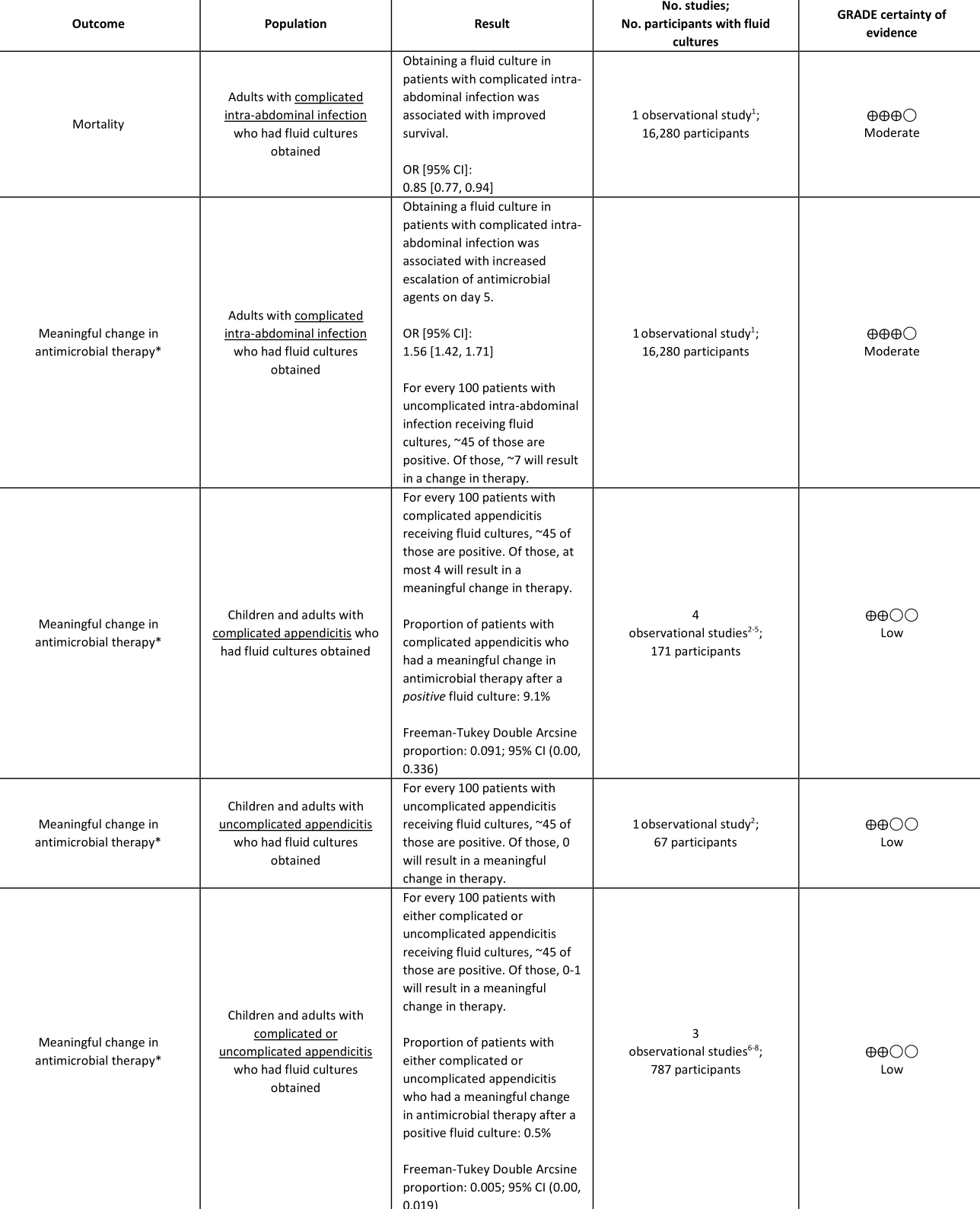 Summary of Evidence for Obtaining Intra-Abdominal Cultures in Patients with Uncomplicated and/or Uncomplicated Intra-Abdominal Infection