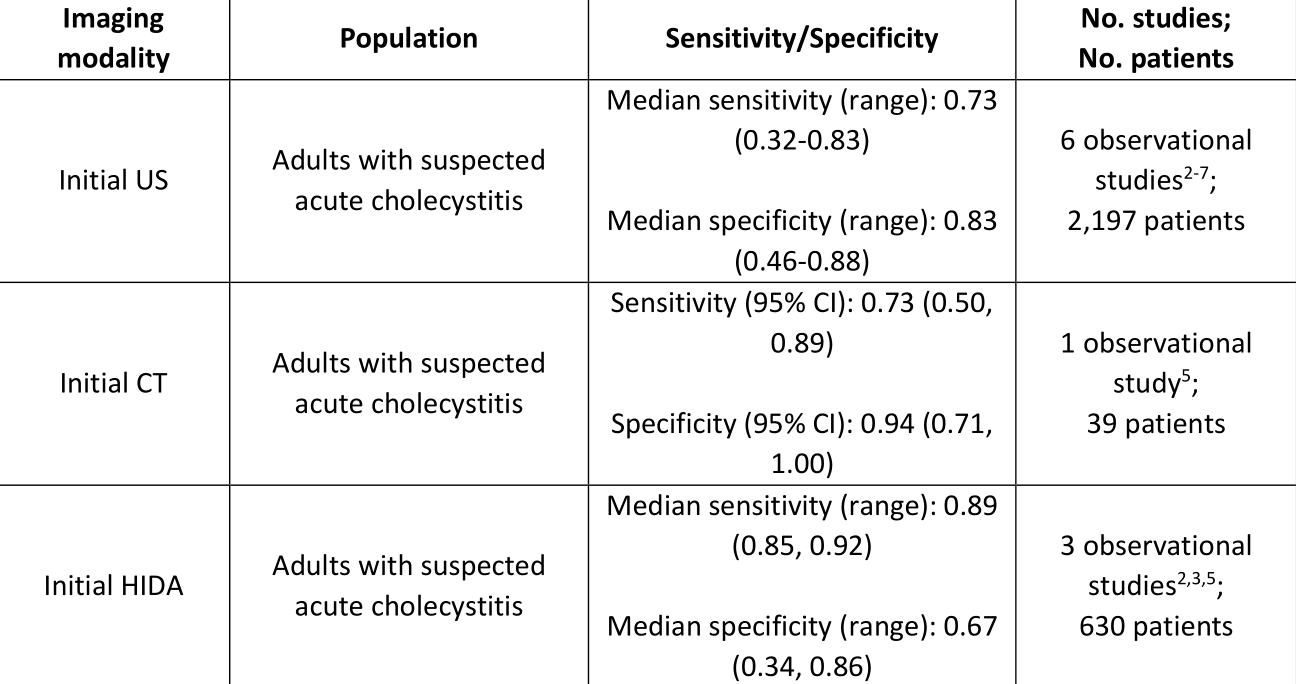 Summary of Evidence for Imaging Modalities Compared to Pathology for Diagnosing Acute Appendicitis in Adults