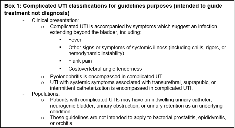 Box 1: Complicated UTI classifications for guidelines purposes (intended to guide treatment not diagnosis)